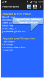 4.Zum Eintragen der Personen/- und Führerscheindaten weiter mit " Anmelden"
