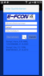 2.Über Lupensymbol suchen, z.B. Name eingeben und Lupe antippen. Bei mehreren Ergebnissen, prüfen und korrekten Eintrag antippen
